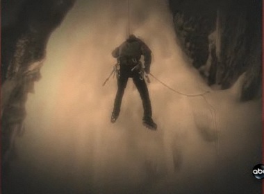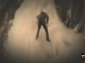 They then go into the setup, where the interviewer decides that he is more qualified than the climber to explain to the audience what toproping is. Although in this case he might have a point. They talk about how he was feeding himself rope for safety as he scaled the sheerness of the sheer icy face (FYI, “sheer” and “scale” are never used to describe climbing by real climbers) and then the nylon gave way.