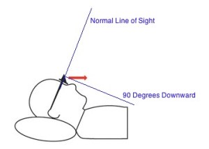 The Problem: Umm…well…look at the fuckin’ things. You just know that after laying there for a while reading you’re going to forget you’re wearing them, sit up, get totally disoriented and trip and crack your head open on the doorknob and they’ll find you, dead and alone (definitely alone), wearing some unidentifiable chunks of glass on your face. And again, science comes back to bite us in the ass. Science is persistent that way. They say they bend light 90 degrees, which is probably true. But 90 degrees is not what you want. I illustrated for you what 90 degrees looks like on the little diagram they provide.