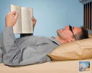 Description: “allow you to read while lying supine in bed, eliminating the need to crane your neck,” using “two optical-quality glass prisms that bend your vision 90 degrees.”