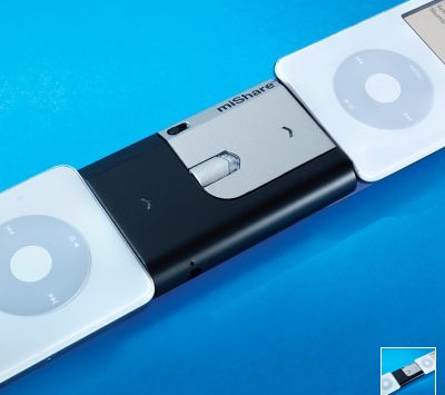 Description: “allows you to easily share music, video, and pictures between two connected iPods without the use of a computer”