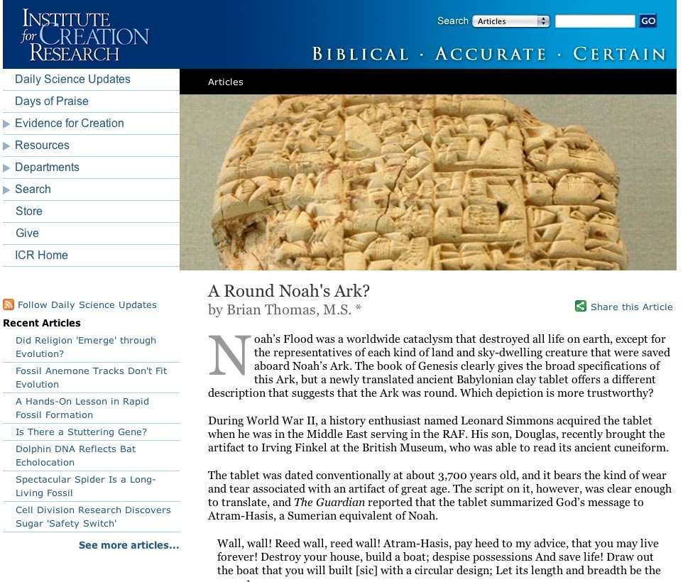 The Institute for Creation Research does not have an especially positive reaction to this, saying that this account of a round ark can’t be real, not because it conflicts with Christianity, but because it doesn’t make sense.