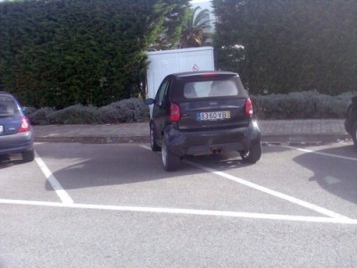 This man has also occupied two spaces with one car, but his crime is both more egregious than that and entirely self-evident. First of all, that’s a Smart ForTwo. It is absolutely miniscule. It is, for example, literally six feet shorter than my car, and I’m not driving a Maybach or anything (it’s eleven feet shorter than a Maybach). My point is, a fucking toddler could make that car fit in one space. You could probably fit it in horizontally. You could probably stack two of them in one space, maybe three. Plus, if it gets scratched, you can probably buy an entire replacement panel for about a hundred bucks. There is absolutely no excuse for ever doing this in the history of ever.