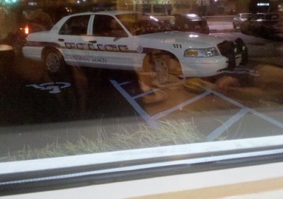 It’s the same double handicapped space combo with a side of no parking zone, but this one’s a motherfucking cop. In front of an IHOP. According to the person who submitted it, the cop came in, talked to the staff for an hour, and left without ordering anything at all. Parked like that.