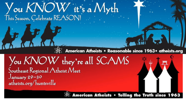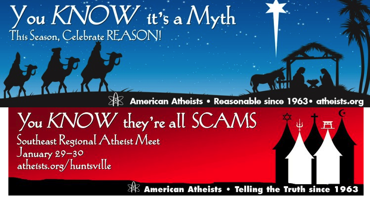 There is an organization in this country called the American Atheists.  They’re mostly dedicated to maintaining the separation of church and state, but they have some other assorted causes.  One thing that got them a fucking gigantic amount of press recently is these billboards.