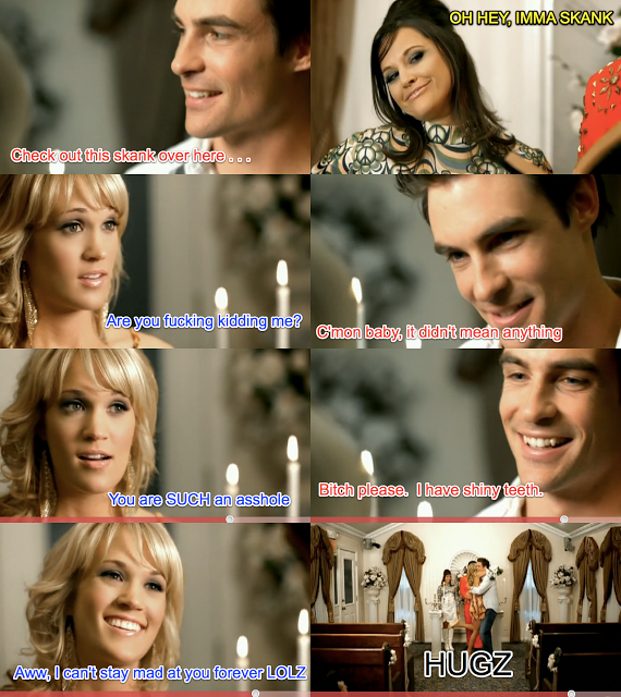 But wait! not all of Carrie’s songs are about drinking and making abysmal life decisions. Sometimes she makes abysmal life decisions without even the help of alcohol. Let’s take a look at this one.