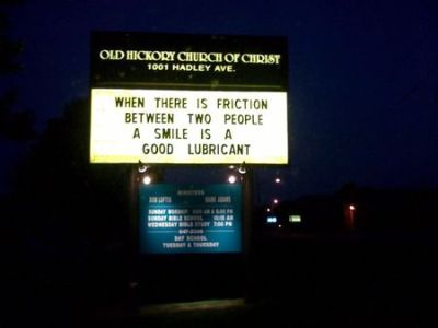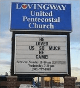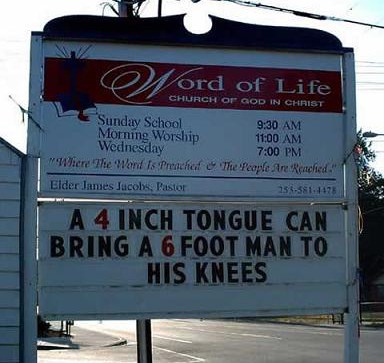 Oh come on now. Yes this is obviously a prayer reference, but really? No one noticed that? Does that mean that no one involved in the running of this church has ever given or received a blowjob (Editor’s Note: Yes. It does mean that)? I know church people are boring in bed, but that seems a little implausible (Ed.: It’s not).