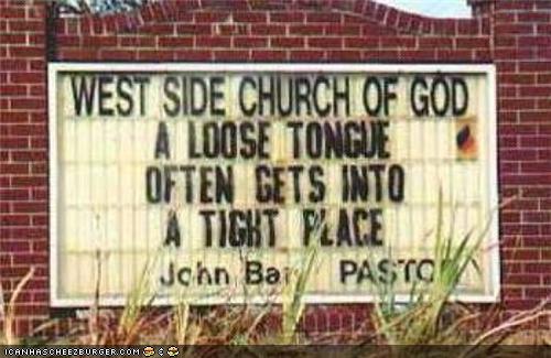 I have a theory, partially grounded in fact. First, the fact: pastors don’t get laid. Religious attitudes toward sex vary, but they are inevitably prudish and ignorant. Some sects of Christianity think that any sex that isn’t specifically for procreation purposes is sinful and that pastors/priests should be entirely celibate (Catholics), and some are more liberal, but I’m willing to bet that none of them preach an attitude of “bone whoever you want as long as you’re reasonably safe about it and also as long as they’re cool with the aforementioned boning.” And if you never have sex or talk about sex, you miss out on the wealth of sexual innuendo and double entendres that the English language has to offer. They’re just not on your mind. The result is this (in no particular order).