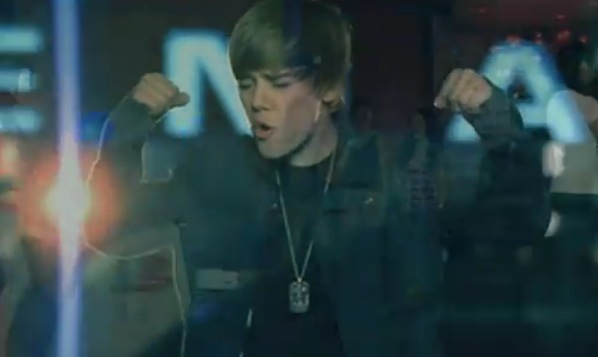 So first, Justin Bieber is standing outside going “Waaaaaaoooooaaaaoooooaaaaaoooooaaaoh” a lot, and apparently it’s cold because he wraps his jacket around himself and looks like he’s about to cry.  I don’t know, maybe it’s really cold there…in Los Angeles.