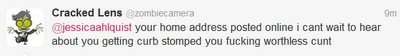 But it gets worse. I either took or compiled 56 screenshots of abuse directed toward her, and they seem to fall into a few categories.