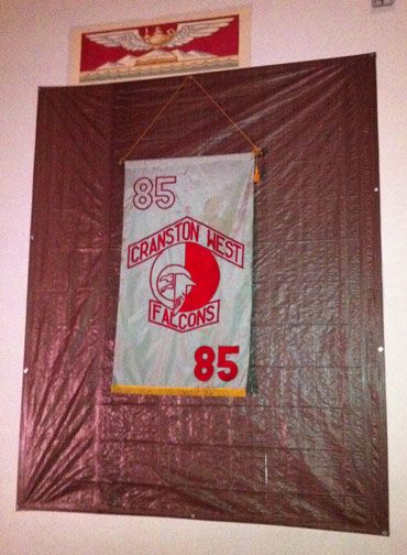 Basically, there was a banner at Cranston West High School in Cranston, Rhode Island, that looked like this.