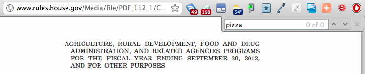 Here’s what happened: On November 14th, 2011, Congress passed House Bill 2112, the conveniently-titled “AGRICULTURE, RURAL DEVELOPMENT, FOOD AND DRUG ADMINISTRATION, AND RELATED AGENCIES PROGRAMS FOR THE FISCAL YEAR ENDING SEPTEMBER 30, 2012, AND FOR OTHER PURPOSES.” The bill is right here, but it’s 401 pages long so I don’t expect you to read it. I certainly didn’t. It has a staggering number of things in it that have nothing at all to do with this issue, so we’ll focus on the relevant part.