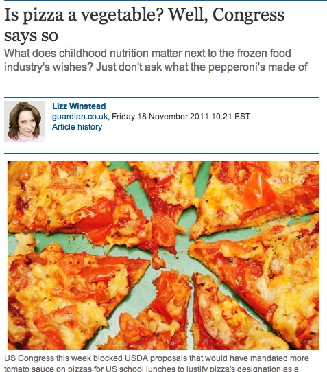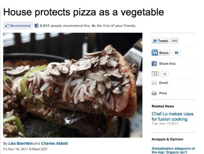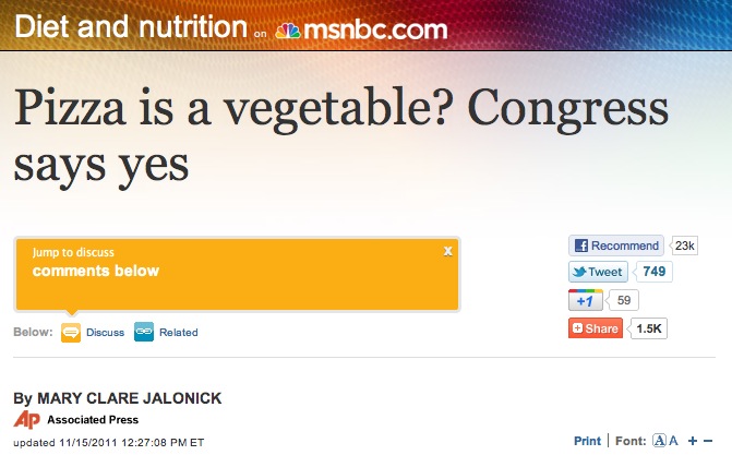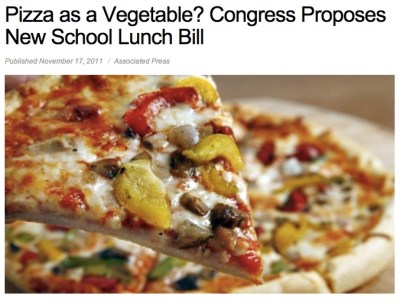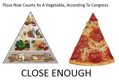 The resounding popular opinion across the web and world seemed to be that Congress had classified pizza as a vegetable because they’re stupid and don’t care about childhood obesity, and that this entitles lunch ladies to serve more pizza because they have to serve a certain number of vegetables, and now pizza counts as one.