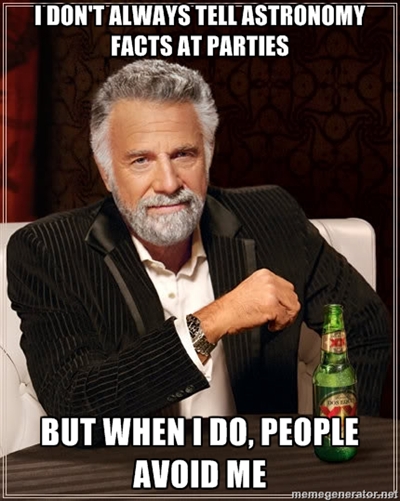 So that’s that, kids! Lots of space rocks are flying around in space and crap. And now you know enough to bore the shit out of lots of people all the time or, if they’re actually cool people, they’ll be fascinated and like when you tell them these things. I have one friend who calls me her official personal astronomer (actually I call myself that on her behalf), and when I told her why the full moon is a lot brighter than the nearly full moon, she said it was her favorite fun fact I’d ever told her. That felt good. Anyway, now you know some more facts.