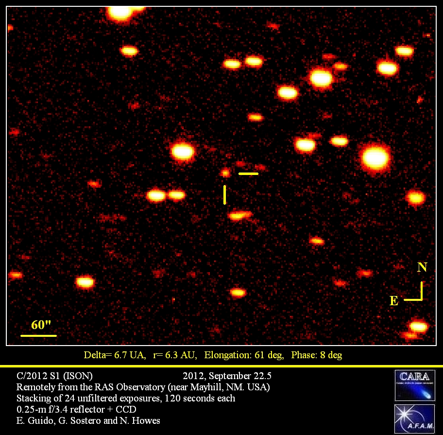 This one is named as romantically as the rest of them: Comet C/2012 S1. People are saying it’ll be the “Comet of the Century,” but that’s not necessarily true. The comet was discovered in September, and its orbit is fairly well-established. We know that the comet is going to come very close to the Sun (800,000 miles), which is very promising for it to have a huge tail that will look very shiny and awesome from Earth. For perspective, a comet in 1910 was bright enough to see for months, even in the daytime, and in 1882 a comet passed that was bright enough to see in the daytime sky right next to the Sun. That’s very cool, and this one could be that bright too. The problem is that comets are very unpredictable objects. They’re mostly ice and some rock, but we rarely know the proportions of those two materials until we watch it start to burn off. If it’s a lot of ice and not very dense, it might all melt away as it gets closer over the next few months, before we even get a good look at it. If it’s too much rock, the tail won’t be as bright. We just don’t know. What we do know is that it’s almost half a billion miles away now and already has a 40,000-mile tail, so as long as it’s big enough not to burn out before it gets close, it should be pretty awesome. Keep an eye out. You’ll hear about it.