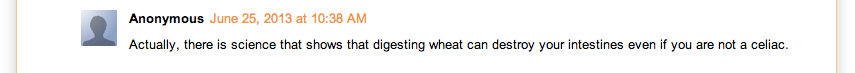 That seemed like a bold claim, given that celiac disease is an autoimmune reaction. More specifically, “If you have celiac disease, eating gluten triggers an immune response in your small intestine. Over time, this reaction produces inflammation that damages the small intestine’s lining and prevents absorption of some nutrients.” That’s from the Mayo Clinic, which is considered somewhat of an authority on the goings on in the human body. Autoimmune, by definition, means that the wheat is not the problem. It means your body is attacking itself in response to an outside stimulus (wheat) that is not inherently problematic. Allergies are also autoimmune reactions, because there’s nothing wrong with cat hair or peanuts or pollen unless your body thinks there is, and then it overreacts to encountering them.