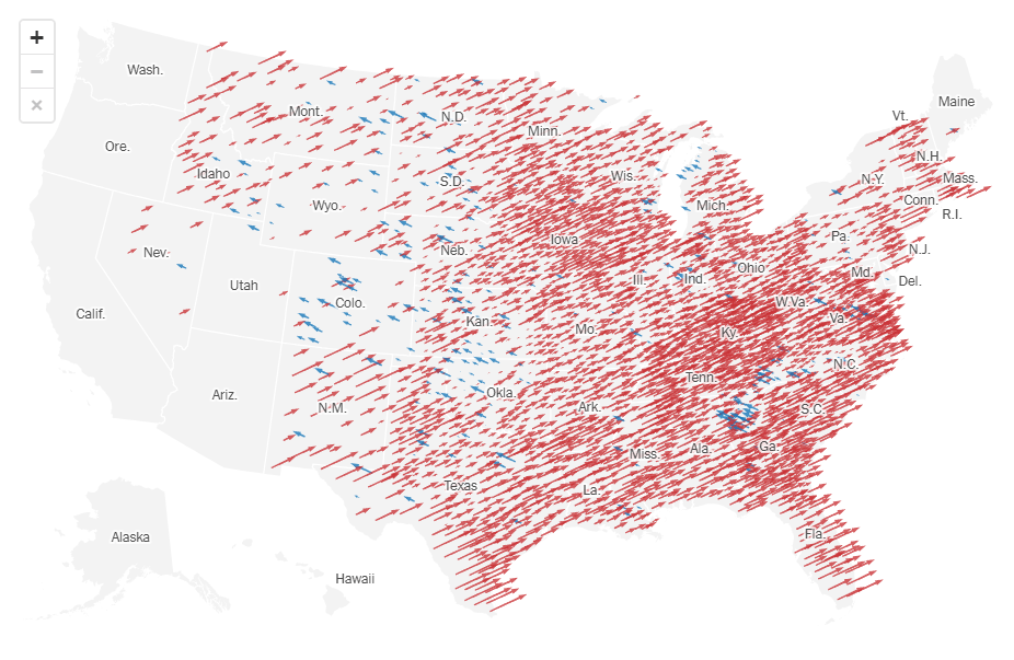 That represents the shift since the last election. Everywhere except Colorado and Atlanta, essentially, has gotten redder than last time.